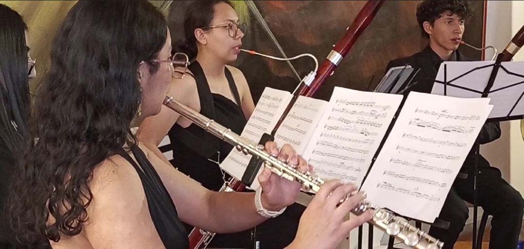 Lumina Ensamble, un quinteto y ensamble conformado por estudiantes de la Pontificia Universidad Javeriana, en concierto en el Salón Santander de la Gran Logia de Colombia.