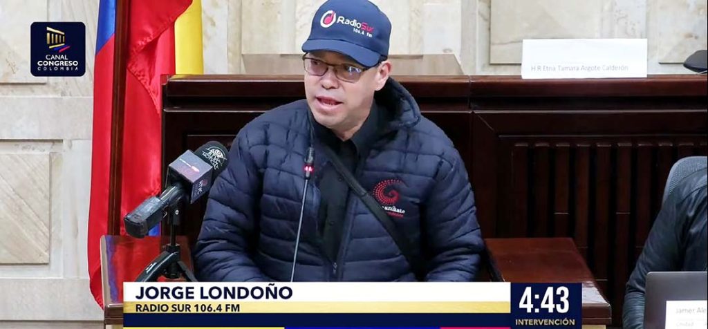 Jorge Londoño, en representación de la Red Colombiana de Radio Comunitaria (Recorra), presentó los cinco pilares fundamentales del Proyecto de Ley 013: